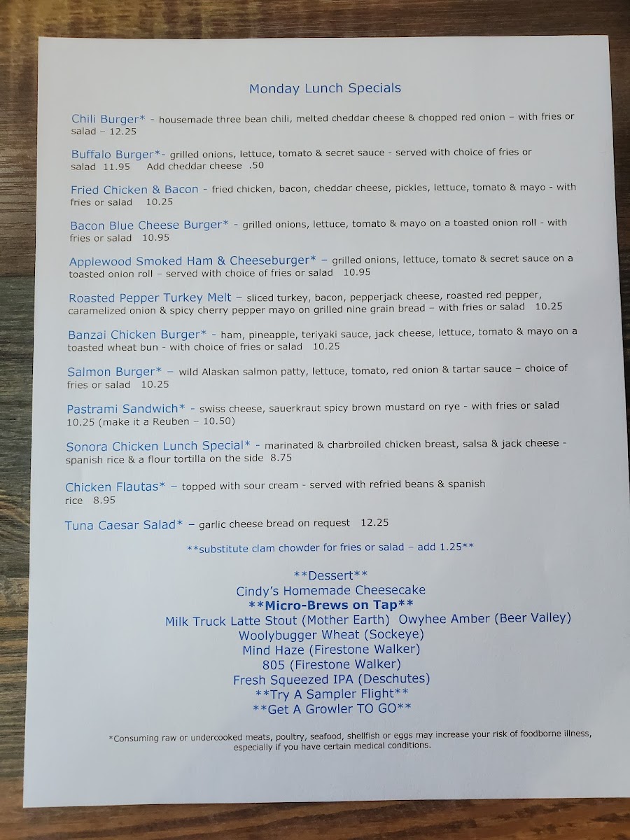 Welcome to Brewsky's Broiler, a delightful tavern-style sports pub located in the heart of Ontario, OR. With a hunting and fishing theme, this cozy spot offers a diverse menu meant to please every palate. Customers rave about the generous portions, vibrant flavors, and prompt service.